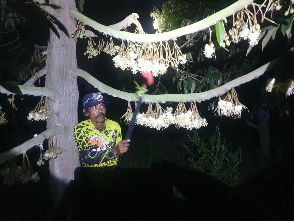 Seperti yang dilakukan H. Sholahuddin, pemilik kebun durian Perkasa Farm di Desa Brangsi, Kecamatan Solokuro, Lamongan, dengan tekun ia melakukan kawin silang manual pada malam hari, saat bunga durian sedang mekar sempurna.