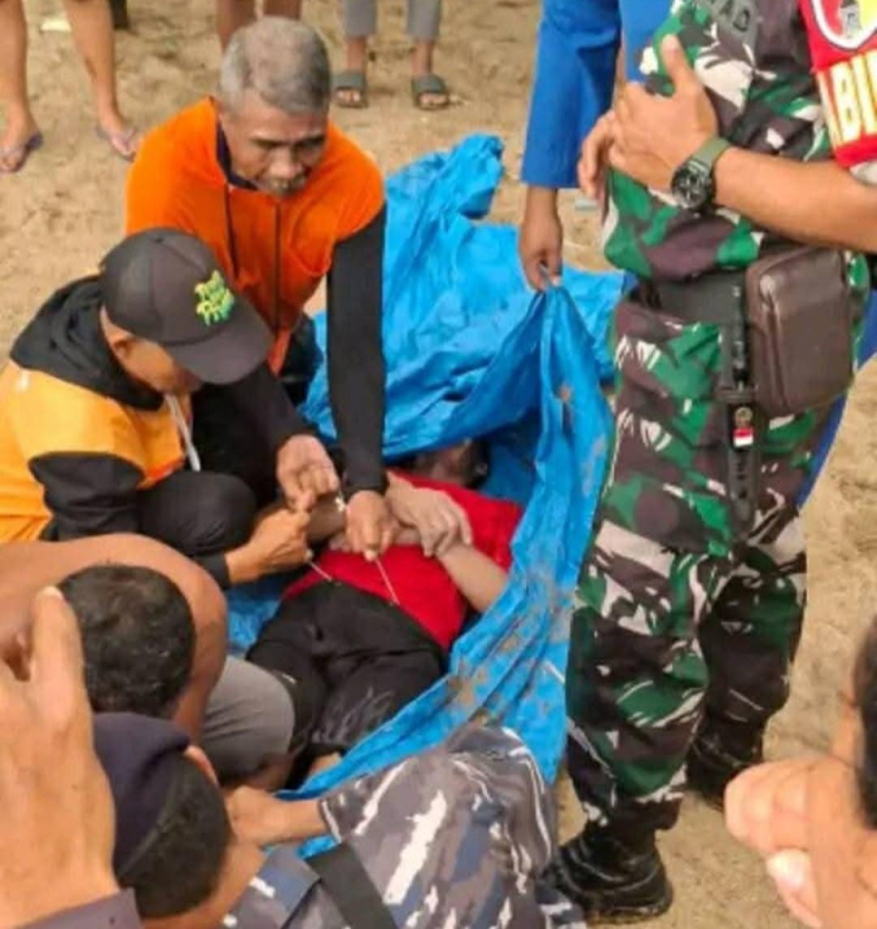 Setelah pihak Polsek Bakung koordinasi dengan Poskamladu, BPBD serta para Nelayan pantai Pangi, langsung petugas dan para nelayan pantai Pangi bergerak mencari keberadaan korban, baik di sungai atau seputaran tepi pantai Pangi.