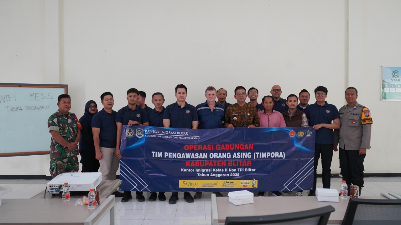 Kepala Kantor Imigrasi Kelas II Non TPI Blitar menyampaikan bahwa Operasi Gabungan ini merupakan bentuk koordinasi lintas instansi dalam pengawasan orang asing di wilayah Kabupaten Blitar.