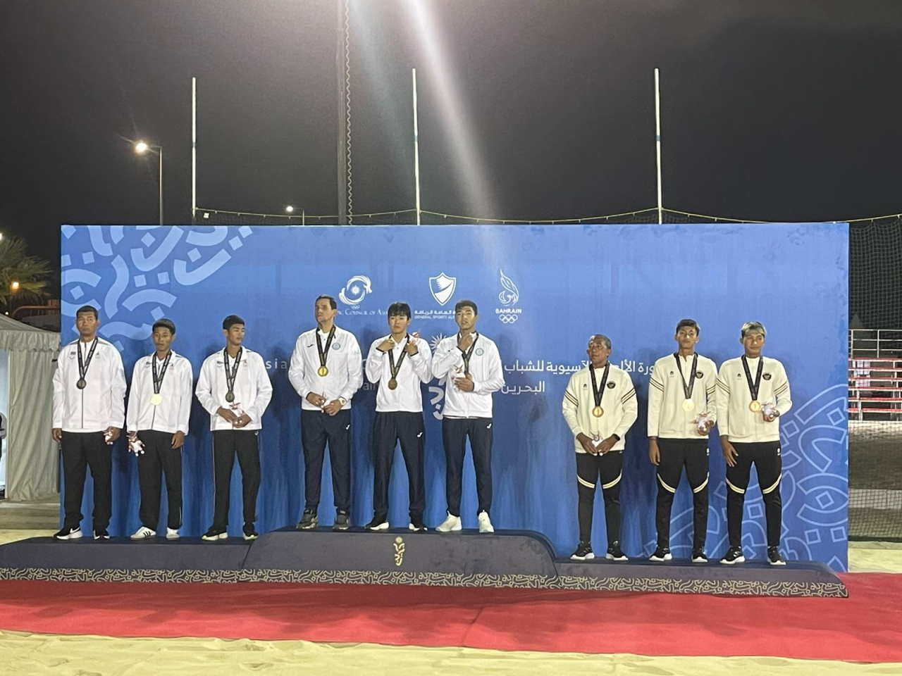 Penampilan mereka luar biasa saat menumbangkan lawan di pantai Sama Bay Bahrain, pada Senin (27/10/2025). Timnas Bola Voli Pantai putra cukup bermain dua set untuk meraih medali perunggu.