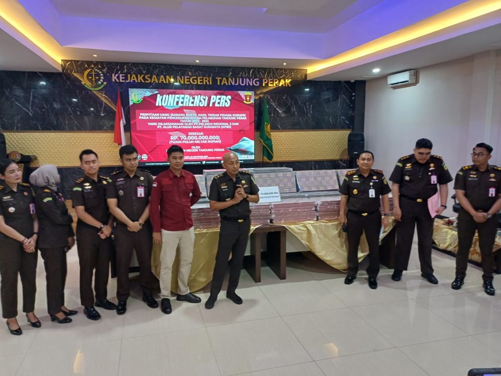 SURABAYAPAGI.COM, Surabaya – Dalam suasana hukum yang terus menuntut keadilan, Kejaksaan Negeri (Kejari) Tanjung Perak Surabaya menunjukkan langkah tegas namun penuh makna. Sebanyak Rp70 miliar uang tunai berhasil disita dari dugaan tindak pidana korupsi proyek pemeliharaan dan pengusahaan kolam Pelabuhan Tanjung Perak yang melibatkan PT Pelindo Regional 3 dan PT Alur Pelayaran Barat Surabaya (APBS) pada tahun anggaran 2023–2024.