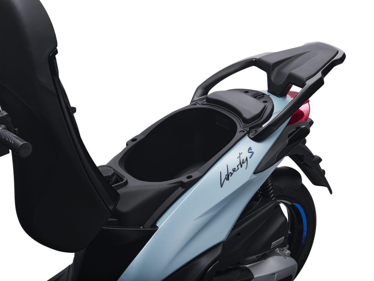 Liberty S 2025 membawa semangat baru dari generasi sebelumnya dengan tampilan yang lebih berani dan sporty. Tersedia dalam dua pilihan warna eksklusif, Grey (Grigio Materia) dan Blue (Blu Ardesia), skuter ini menonjolkan nuansa modern khas Italia. Tampilan depannya kini semakin tegas berkat lampu LED horizontal serta gril bermotif honeycomb yang terinspirasi dari lini premium Piaggio.