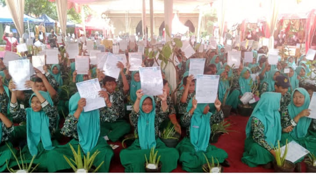 Acara yang cukup semarak sudah ditunggu oleh Siswa Siswi maupun para tamu undangan, para murid duduk dengan disiplin sambil membawa masing masing 1 pot tanaman produktif maupun tanaman hias untuk mendukung program sedekah oksigen serta membawa Pentigraf yang akan dilaunching dibawah naungan terop depan panggung utama halaman SMPN 1 Jabon.