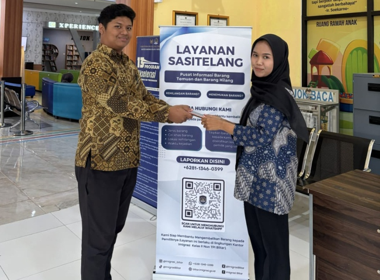 Hal itu seperti yang disampaikan Humas Kantor Imigrasi Blitar Ibu Rini Sulistyawati Kasi Teknologi Informasi dan Komonikasi ke Imigrasian Blitar, lebih rinci Bu Rini panggilan akrabnya dalam keterangan relis tertulisnya, menyampaikan kehadiran SASITELANG (Pusat Informasi barang temuan dan barang hilang) sejak awal November lalu, Rini menambahkan SASI TELANG merupakan sebuah terobosan yang dirancang untuk mempermudah masyarakat dalam melaporkan barang temuan atau barang hilang di lingkungan kantor Imigrasi.