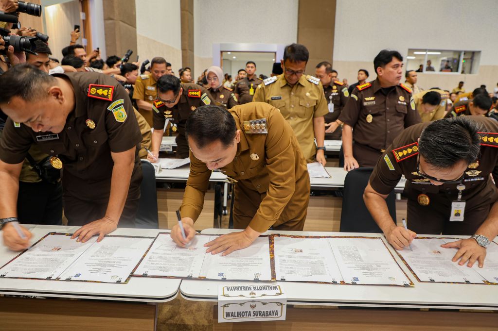 SURABAYAPAGI.COM, Surabaya - Pemerintah Kota (Pemkot) Surabaya melakukan penandatangan Perjanjian Kerja Sama (PKS) dengan Kejaksaan Negeri (Kejari) Surabaya dan Kejari Tanjung Perak terkait penerapan pidana sanksi sosial. Kerja sama tersebut merupakan tindak lanjut dari nota kesepahaman antara Pemerintah Provinsi (Pemprov) Jawa Timur dan Kejaksaan Tinggi (Kejati) Jawa Timur.