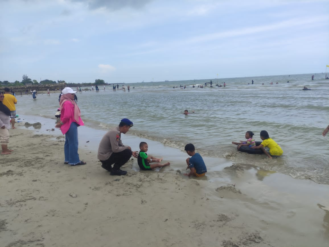 pengawasan aktivitas wisatawan yang menikmati libur panjang di kawasan pantai.