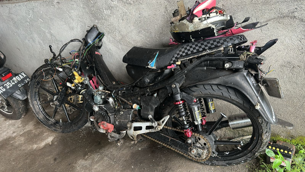 Sesampainya di TKP korban mendahului sebuah kendaraan minibus yang tidak diketahui identitasnya, bertepatan itu dari arah berlawanan melaju sebuah bus Isuzu yang dikemudikan Agus Santoso (49), warga Kabupaten Nganjuk.