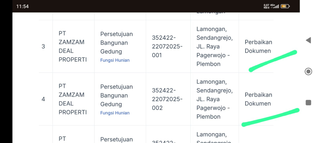 Artinya sampai hari ini belum menyampaikan perbaikan dokumen. "352422-22072025-002 PT ZAMZAM DEAL PROPERTIstatus terakhir perbaikan dokumen, posisi masih di pemohon sejak 25 juli 2025, sampai sekarang belum menyampaikan perbaikan dokumen," terangnya.