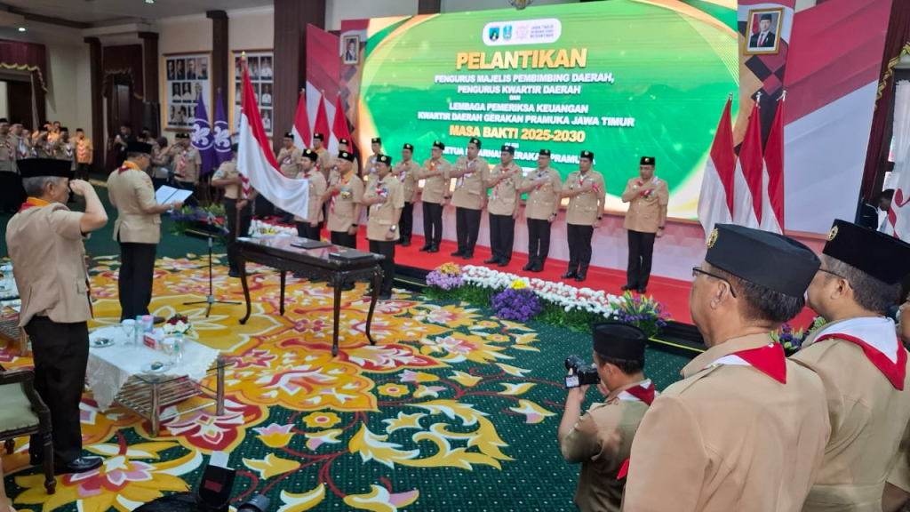 SurabayaPagi, Surabaya – Pengurus Majelis Pembimbing Daerah (Mabida), Kwartir Daerah (Kwarda), dan Lembaga Pemeriksa Keuangan (LPK) Kwartir Daerah Gerakan Pramuka Jawa Timur masa bakti 2025–2030 resmi dilantik di Gedung Negara Grahadi, Surabaya, Rabu (11/2/2026).