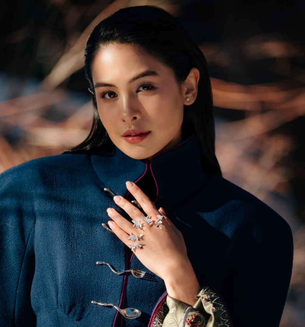 Selain itu, Maudy juga mengenakan rangkaian perhiasan dari Flutter Collection yang terdiri dari diamond ear cuffs, diamond brooch, dan diamond ring cuffs dengan aksen kupu-kupu.