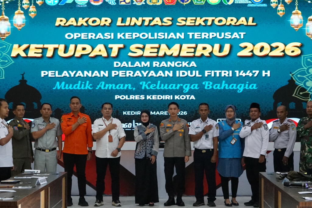 SURABAYAPAGI.COM, Kediri - Wali Kota Kediri Vinanda Prameswati memberikan arahan terkait beberapa upaya menghadapi mudik lebaran. Arahan tersebut disampaikan dalam Rakor Lintas Sektor Operasi Kepolisian Terpusat Ketupat Semeru 2026 dalam rangka pelayanan perayaan Idulfitri 1.447 H. Acara berlangsung di Ruang Rupatama Polres Kediri Kota, Rabu (11/03/2026).