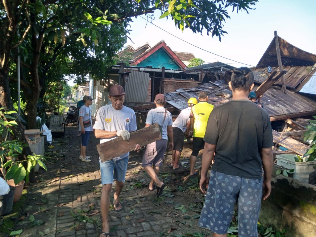 Relawan Suket Teki Bantu Bersihkan Rumah Warga Roboh Akibat Hujan Deras di Kota Kediri