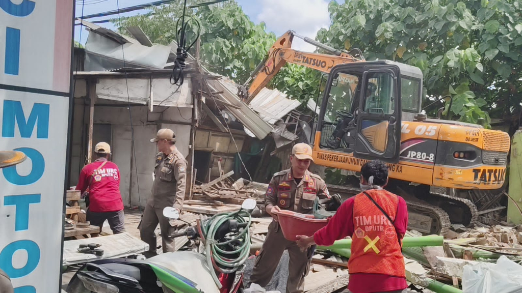Penertiban dilakukan karena bangunan-bangunan tersebut berdiri di area sempadan saluran air yang berpotensi menghambat aliran drainase dan meningkatkan risiko banjir di wilayah sekitar.