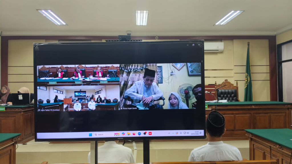 SURABAYAPAGI.com, Gresik – Sidang perkara dugaan korupsi dana hibah Provinsi Jawa Timur tahun 2019 senilai Rp400 juta untuk pembangunan asrama Pondok Pesantren Al Ibrohimi, Manyar, Gresik, memasuki babak baru.